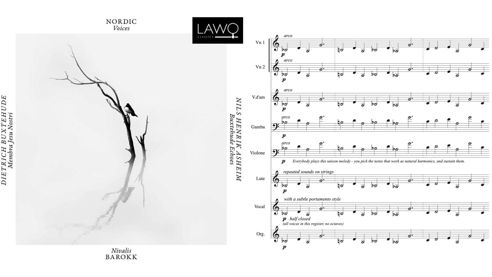 Proudly presenting this new album by Nivalis Barokk and Nordic Voices. It features Dietrich Buxtehude's cantata set Jesu Membra Nostri interwoven with Nils Henrik Asheim's Buxtehude Echoes.
